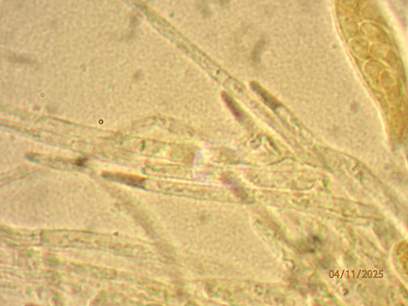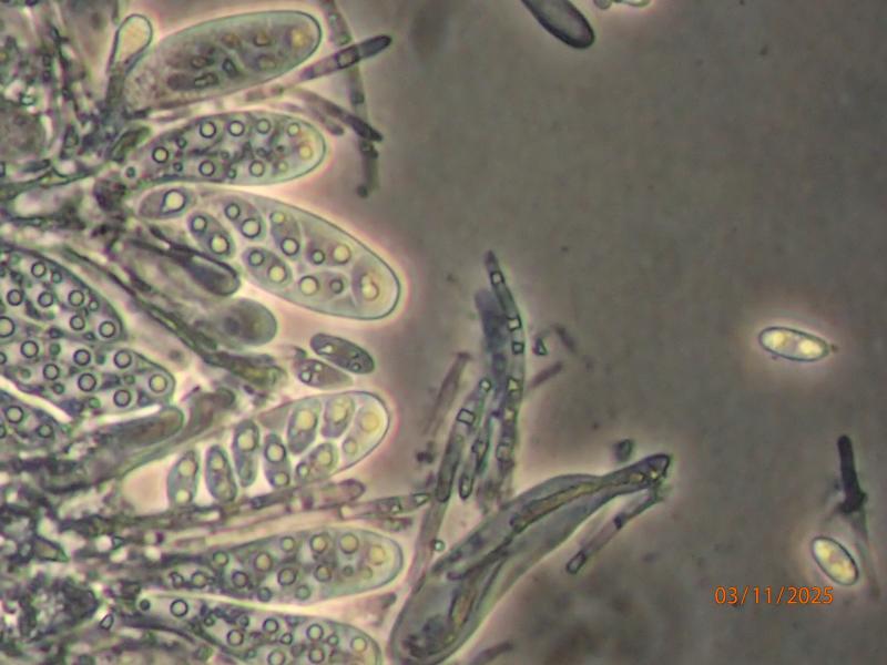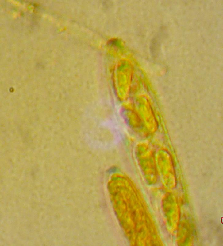 Hi! One more found on old Populus tremula log in Oslo, Norway. Apos 0.1-0.4 mm. Spores ca. 6-7x3-3.5 micr. with two large guttules. Hairs with glassy, amyloid tips. Some hairs with orange incrustration/resin. Asci IKI+ (blue in Lugol). Not sure about croziers.