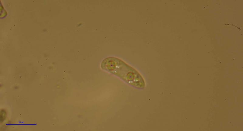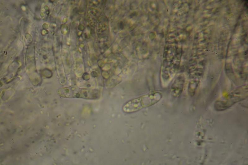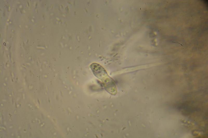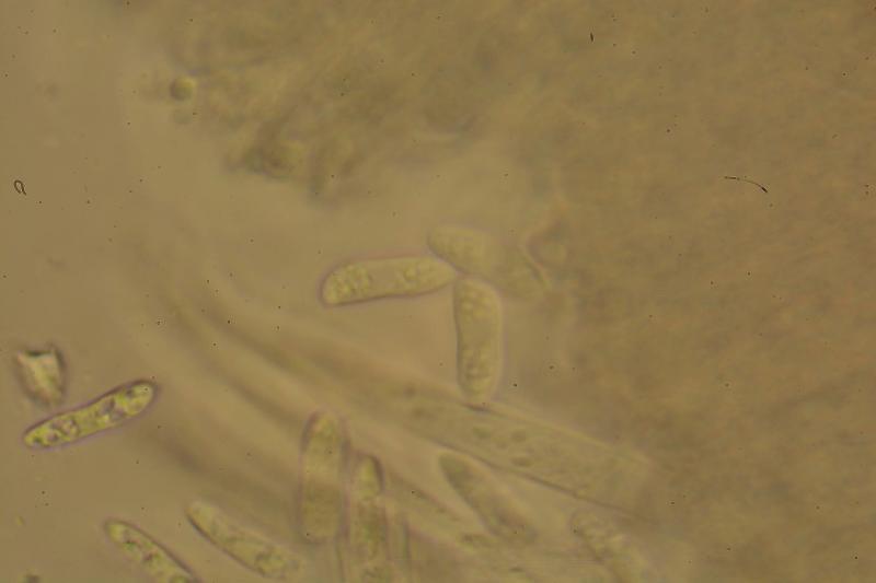 I haven't obtained any free spore print, but I believe I observed mature spores, crusted in the center, with a septum.