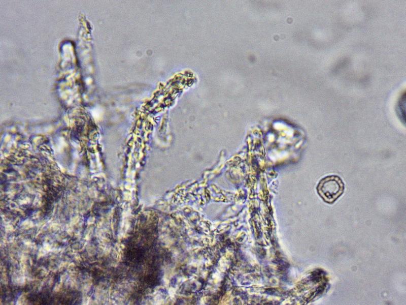No asci, no spores... just these structures, maybe incrusted hairs??