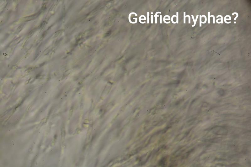 I haven't observed crystals, but there does appear to be gelatinized hyphae.