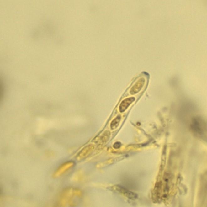 Thomas LæssøeSpores brownish, typically 4-celled; 26.8 x 2.4;