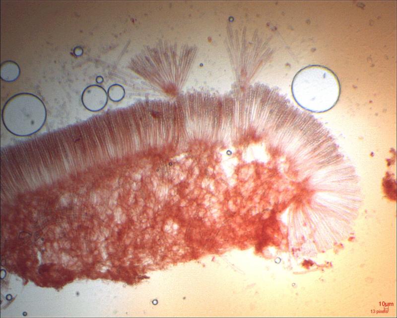 - Paraphyses hyaline, filled with oil droplets, contents in water preparation not yellowing