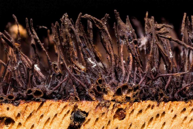 Danny NewmanMelanospora cf. lagenaria on old, rotting, fallen and still attached FBs of conk (possibly Fomes sp.)