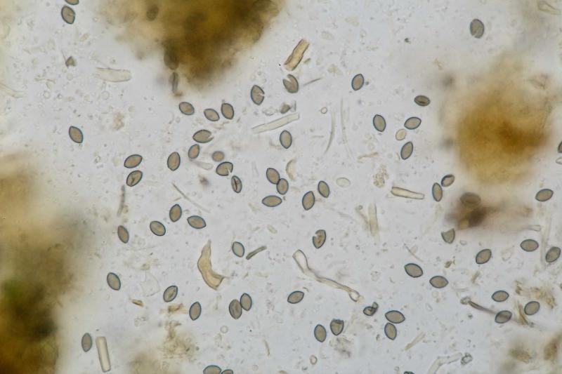 Different references give different spore size ranges for M. lagenaria, and if anything our spores seem small by comparison.   Our collection would appear to constitute a range extension for M. lagenaria, if it can indeed be said to be that sp..  Is there another possibility?