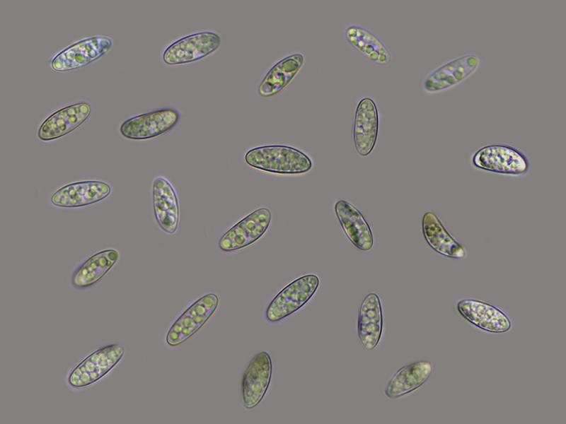 Cylindrical-ellipsoidal ascospores, completely filled with guttules, inamyloid, and with the following measurements in water: