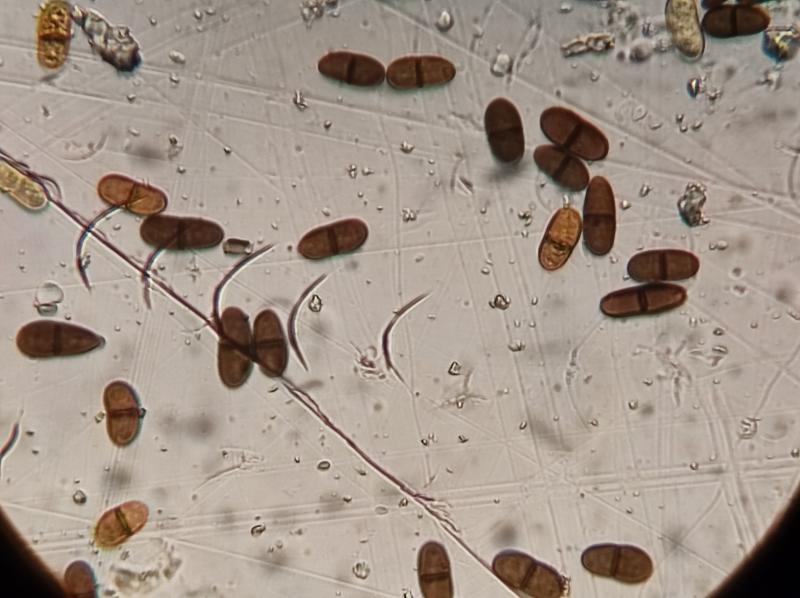 - Conidia brown, ellipsoid to ovoid, 1-septate, rarely 2-septate, with a (slightly) thick septum, 17,5-24,5(-28) x 9,1-11,2 µm