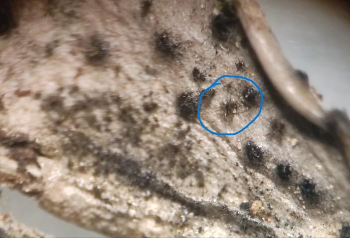 - Conidiomata black, pustular, on both sides of the leaf but mainly on the underside, 0,2-0,4 mm Ø; few specimen were sparsely 'hairy' (see photo's 5 and 6)