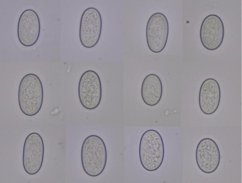 The spore wall is about 0,96-1,5 µm (living) and 1,7-2,8 µm (dead)