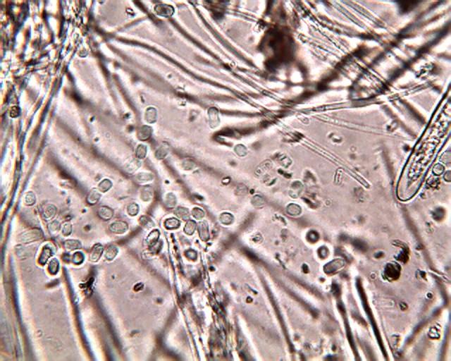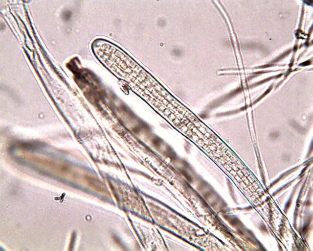 largura he medido sobre 140 micras y cada trocito 4-10 x 3-3,5 micras.