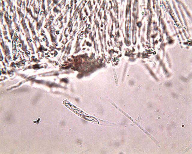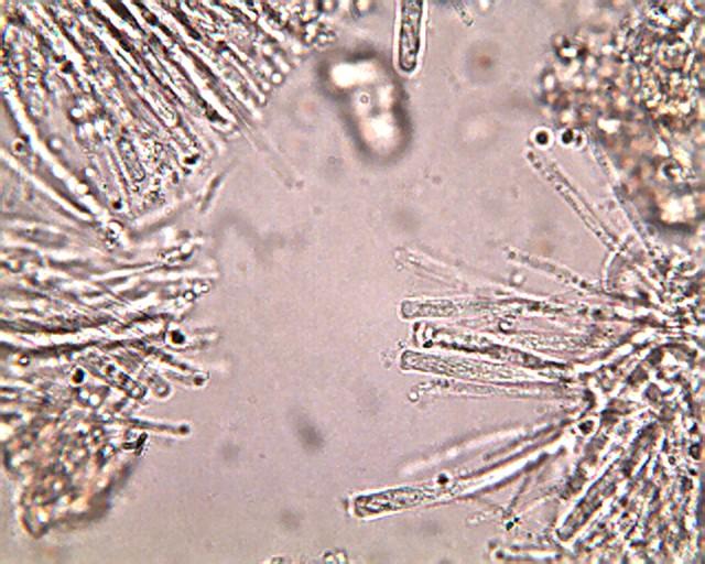Parafisis filiformes con masa gelatinosa en el apice