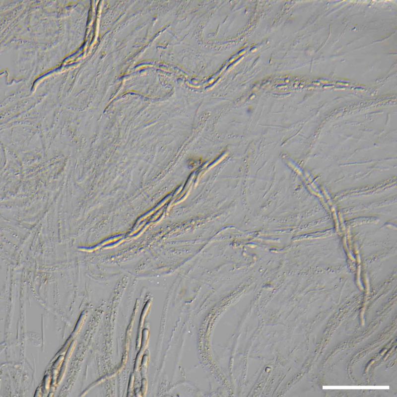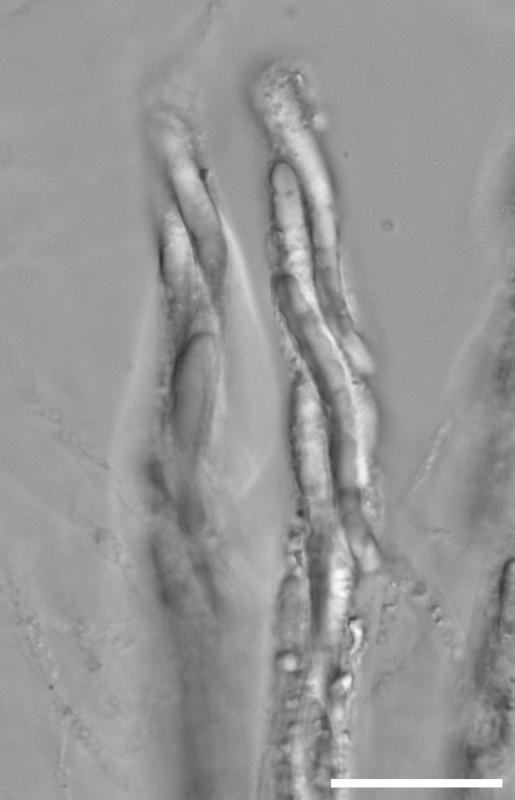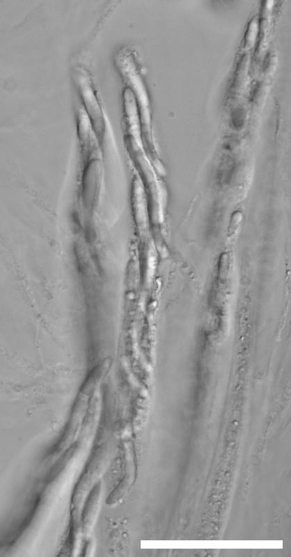 no spores observed outside of asci. inherently unmeasurable inside asci due to length and being densely intertwined.