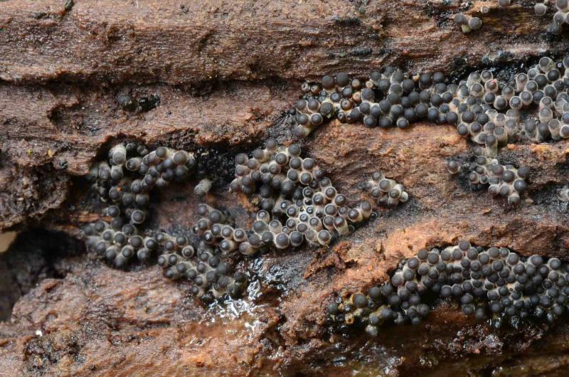 cf. Bombardia on indet. decorticate woodAppalachian Highlands Science Learning Center, Great Smoky Mountains National Park, Haywood County, North Carolina, USA