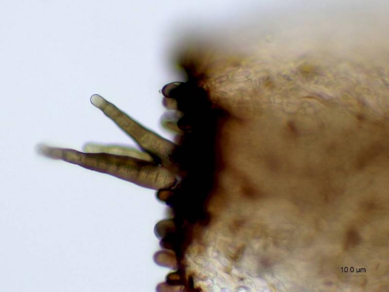 La micro de cet anamorphe de Hercospora sur Tilia me pose un problème. Je n'arrive pas à distinguer les conidies des conidiophores car il me semble qu'ils ont sensiblement les mêmes longueurs.