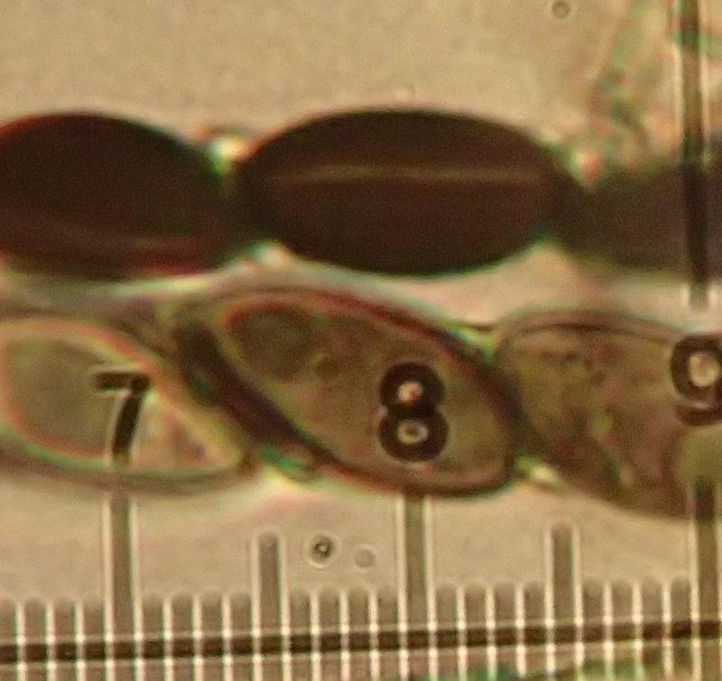 They measure 11.8–13.2 × 5.6–6.4 µm, with Q=1.9–2.25 and N=25.