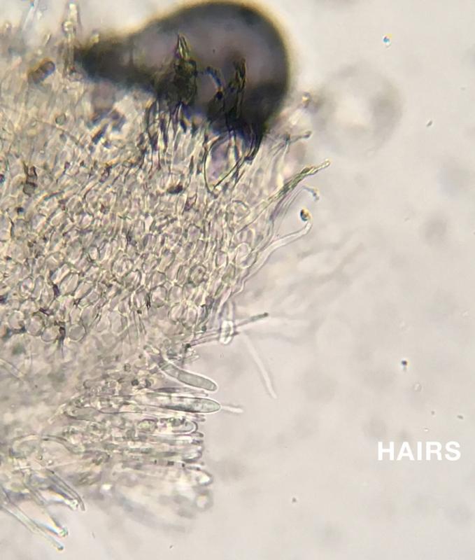 My previous collection from 2023 had very colorful orange hairs, probably due to the abundant exudate. This collection does not seem to be as colorful.