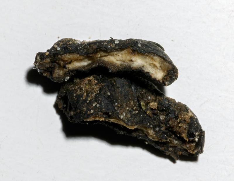 ° sclerotium: 11x8.5 mm; black, wrinkled; contents cottony against the wall somewhat gelatinous and yellowish
