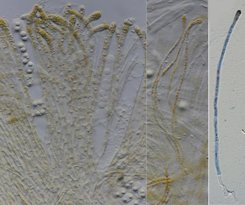 No asci, no spores... just these structures, maybe incrusted hairs??