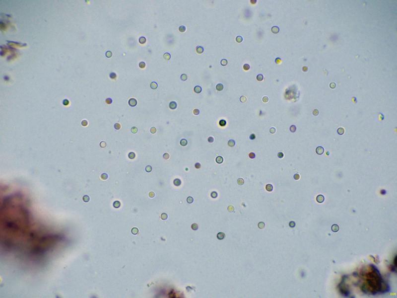 Completely spherical, hyaline, small ascospores, with the following measurements of free ascospores: