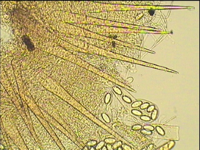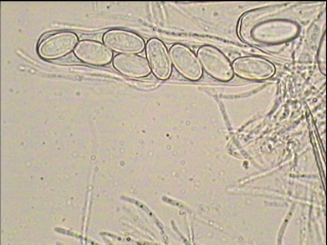 Pour les asques les mesures sont (150-190 x 18-23 µm) et pour les spores 20 x 11 µm. Les poils raides non septés sont de l'ordre de 250 à 300 µm.