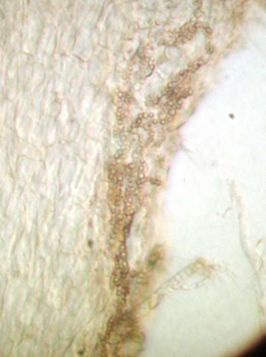 Nous l'avons trouvée (en 17 ans!) 7 fois (MEN différents) sous la forme mature : stromas coniques vert pâle (orange-brun-olive plus tard) à nombreux périthèces; beaucoup plus souvent sous la forme de "moisissure blanche " (anamorphe??) voir aussi photo et description sur Breitenbach.