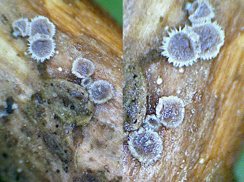 Hola, he encontrado estos pequeños Ascos liquenizados ?? entre Stylodothis puccinoides, en madera de boj, y no se que puede ser. alguna idea de por donde tengo que mirar.Diametro 0,5 y 1 mm