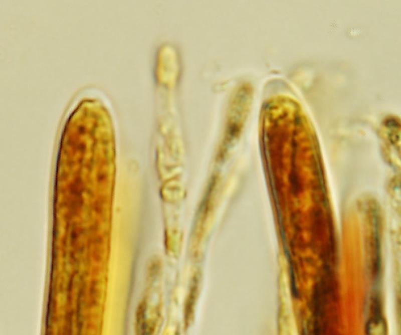 | Remarque | A somewhat unusual collection with relatively small, rather dully colored, sometimes hardly stipitate apothecia growing on not particularly wet substrate (other than due to rain; nowhere near running water). However, the microscopic details fit very well for V. flavovirens. |