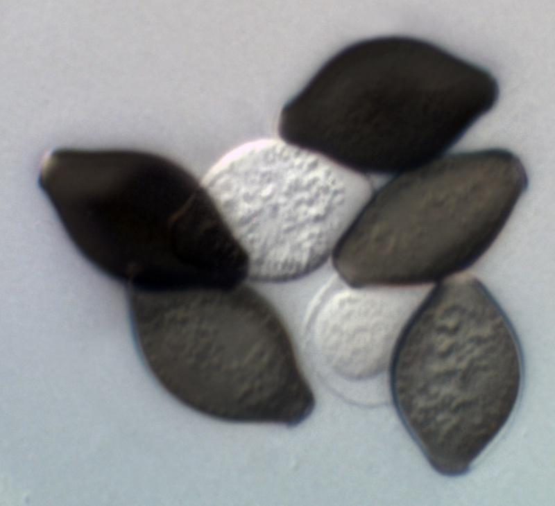 Many thanks Paul - very helpful. I can see that the ends of the spores are dissimilar - nipple like at one end and truncated at the other, often with a hint of a hyaline "bump".